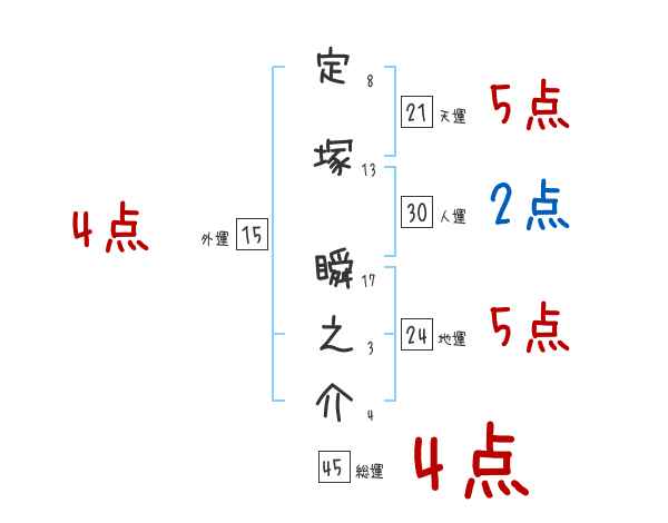 天運![]() | 定塚瞬之介さんの天運は21画の5つ星!統率力がある。独立し成功する。名誉を手に入れる。 家系が持つ宿命的な運勢を表します。祖先から受け継いだ苗字ですので自分の力が及びません。家柄を象徴します。 |