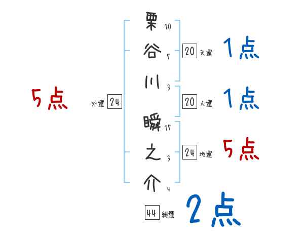 栗谷川瞬之介さんの画数の鑑定結果