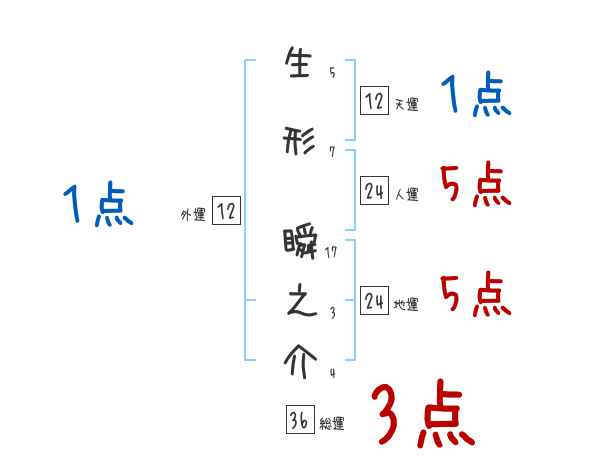 生形瞬之介さんの画数の鑑定結果