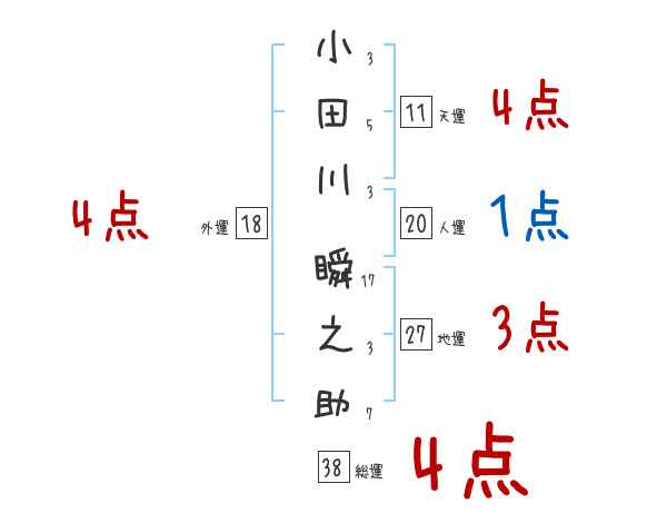 小田川瞬之助さんの画数の鑑定結果