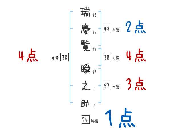 瑞慶覧瞬之助さんの画数の鑑定結果