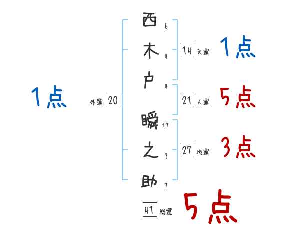 西木戸瞬之助さんの画数の鑑定結果