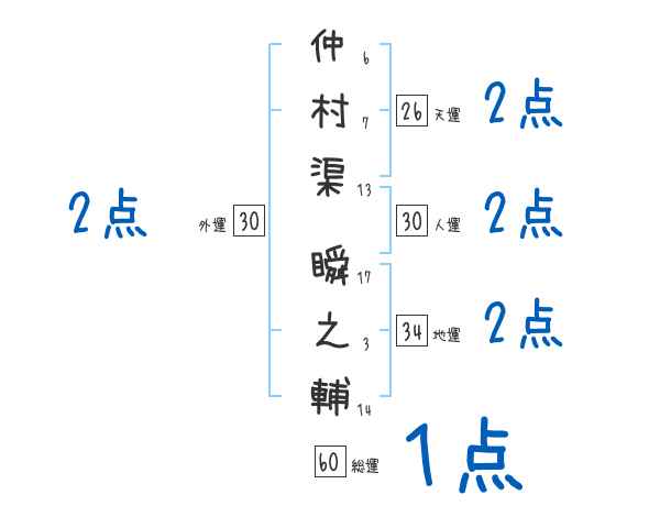 仲村渠瞬之輔さんの総運は60画の1つ星