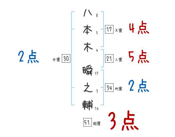八本木瞬之輔さんの画数の鑑定結果