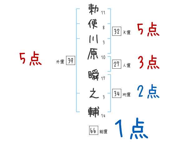 勅使川原瞬之輔さんの画数の鑑定結果