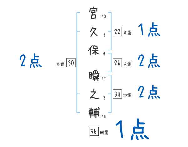 宮久保瞬之輔さんの画数の鑑定結果