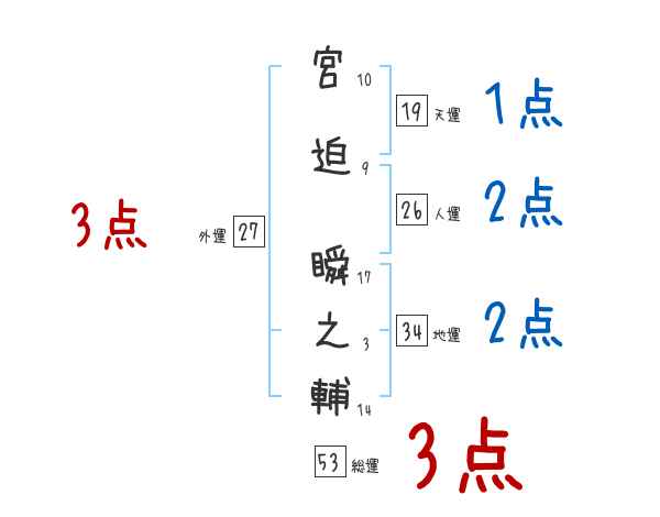宮迫瞬之輔さんの画数の鑑定結果