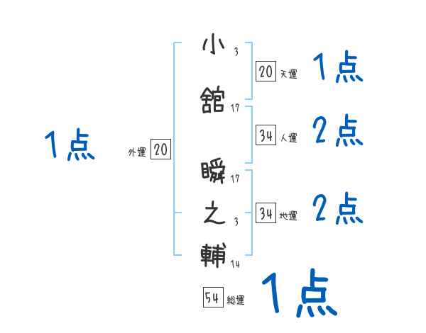 総運![]() | 小舘瞬之輔さんの総運は54画の1つ星!トラブルが多いかも。周りをよく見て協調して過ごしましょう。 あなたの人生を表す1番重要な運勢です。生涯を通じて影響する総合運となり、主に50歳以降の晩年期に影響を及ぼします。 |