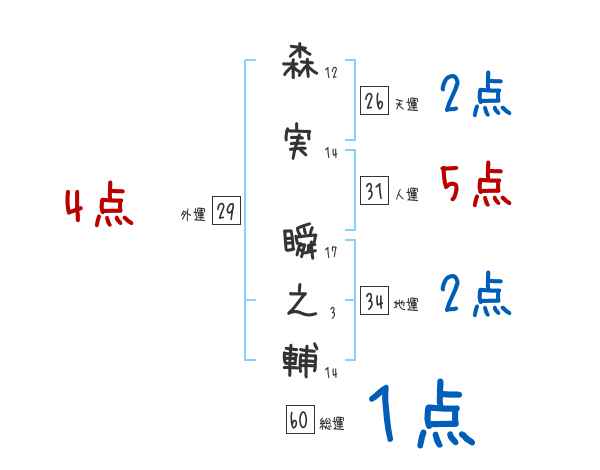 森実瞬之輔さんの外運は29画の4つ星