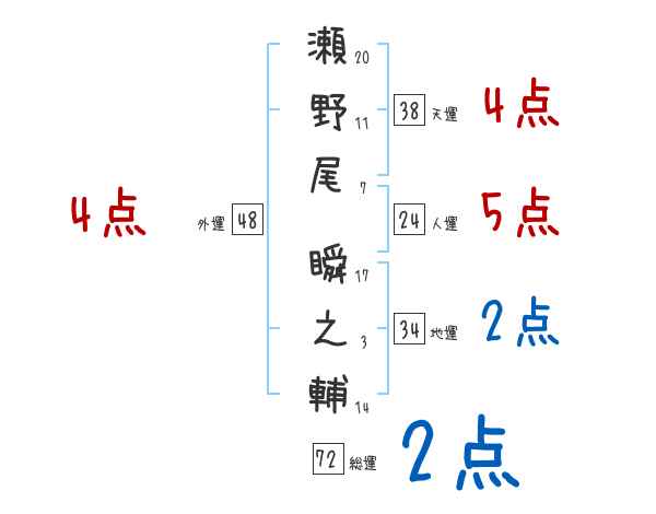 瀬野尾瞬之輔さんの画数の鑑定結果