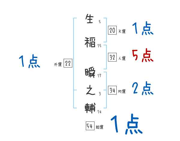 生稲瞬之輔さんの画数の鑑定結果