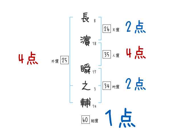 家系が持つ宿命的な運勢を表します。祖先から受け継いだ苗字ですので自分の力が及びません。家柄を象徴します。
