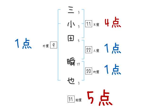 総運![]() | 三小田瞬也さんの総運は31画の5つ星!社交性があり判断力に優れる。順風満帆な人生で円満な生活。 あなたの人生を表す1番重要な運勢です。生涯を通じて影響する総合運となり、主に50歳以降の晩年期に影響を及ぼします。 |