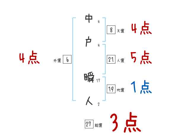 中戸瞬人さんの画数の鑑定結果