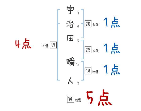 宇治田瞬人さんの画数の鑑定結果