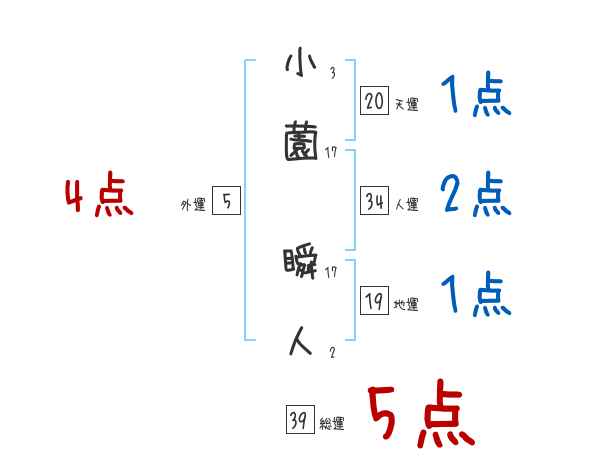 小薗瞬人さんの画数の鑑定結果