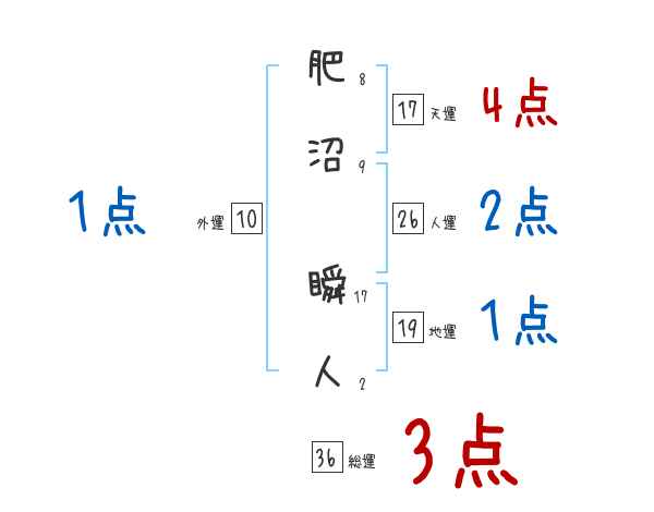 肥沼瞬人さんの画数の鑑定結果