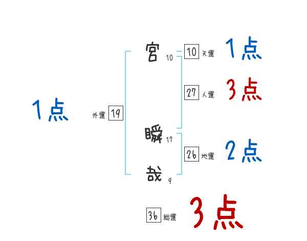 宮瞬哉さんの画数の鑑定結果