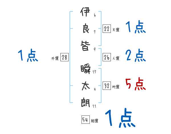伊良皆瞬太朗さんの画数の鑑定結果
