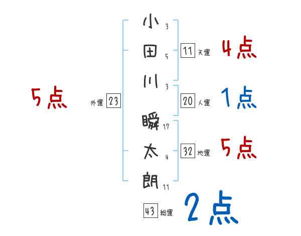 小田川瞬太朗さんの画数の鑑定結果