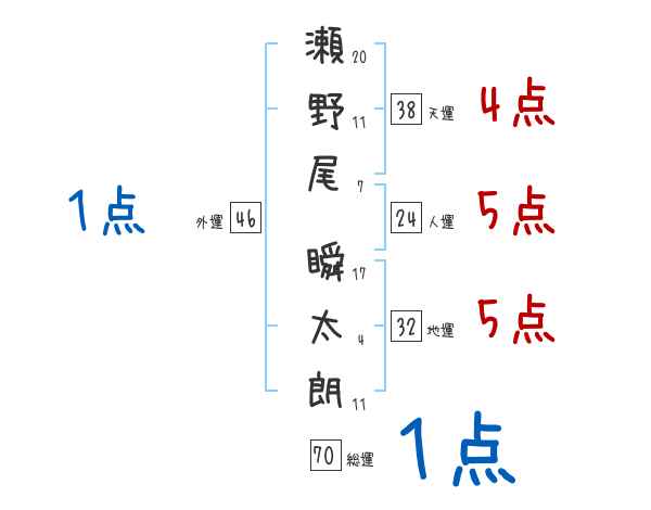 瀬野尾瞬太朗さんの画数の鑑定結果