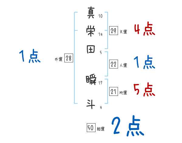天運![]() | 真栄田瞬斗さんの天運は29画の4つ星!完全主義で才能がある。厳格な心の持ち主。 家系が持つ宿命的な運勢を表します。祖先から受け継いだ苗字ですので自分の力が及びません。家柄を象徴します。 |
