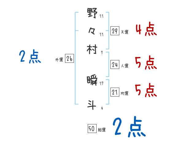野々村瞬斗さんの画数の鑑定結果