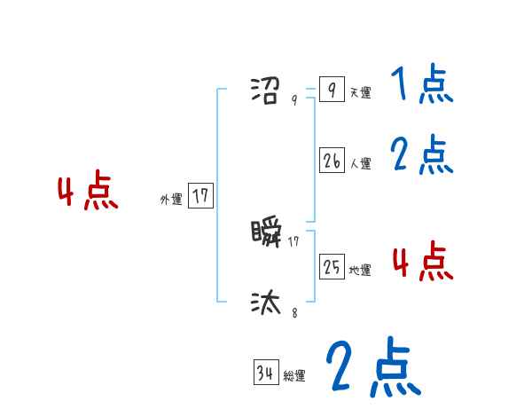 外運![]() | 沼瞬汰さんの外運は17画の4つ星!積極的な行動力。地位を気づき財産を手に入れる。純粋な心と直感力。 生活面を象徴する運勢です。外部から受ける影響力を表し、結婚運、家庭運や職場、環境への順応性を表します。 |