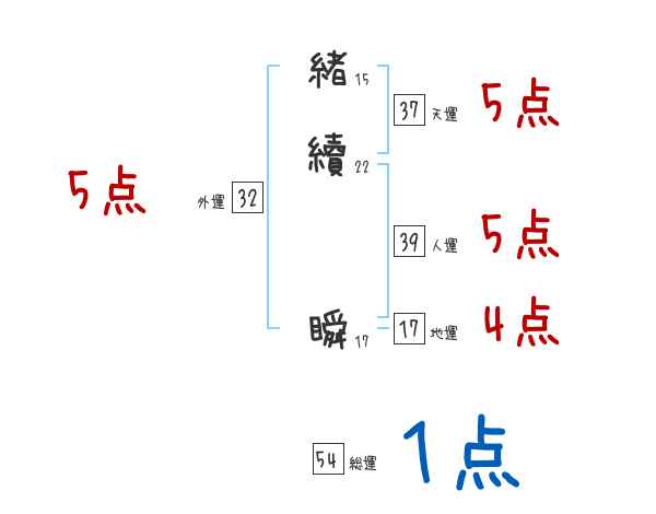 緒續瞬さんの画数の鑑定結果
