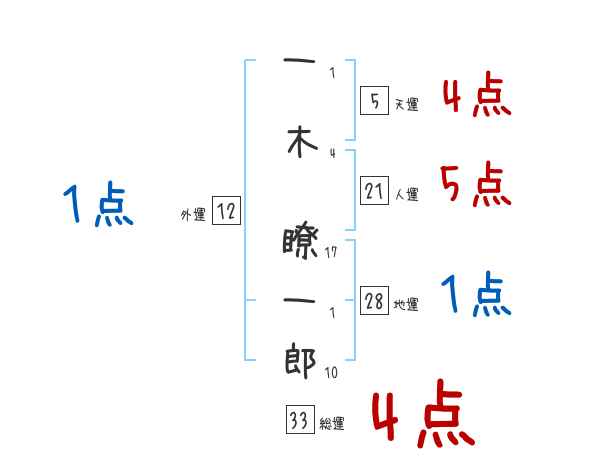 天運![]() | 一木瞭一郎さんの天運は5画の4つ星!健康で安泰。協調性に優れ、財産に恵まれる。 家系が持つ宿命的な運勢を表します。祖先から受け継いだ苗字ですので自分の力が及びません。家柄を象徴します。 |