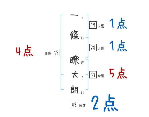 一條瞭大朗さんの画数の鑑定結果