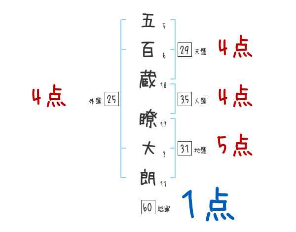 五百蔵瞭大朗さんの総運は60画の1つ星