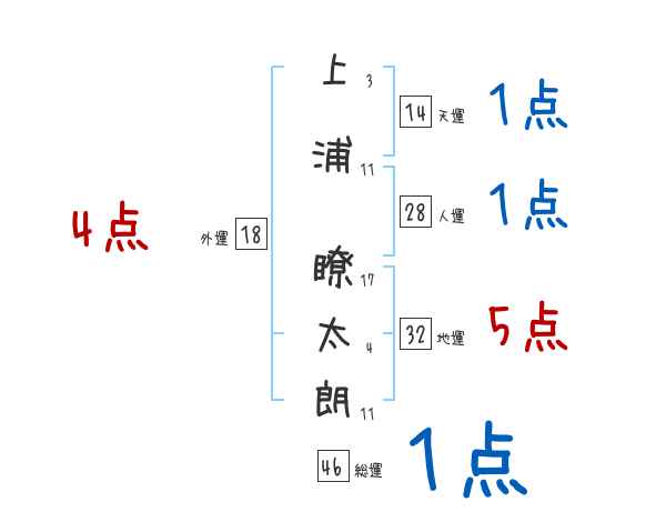 地運![]() | 上浦瞭太朗さんの地運は32画の5つ星!柔軟性があり成功する。チャンスが多く金運が良い。 個性を表す基礎的な運勢です。性格形成や対人関係、行動力など家庭環境に影響されます。主に誕生してから20歳くらいまでの若年期の運勢を表します。 |