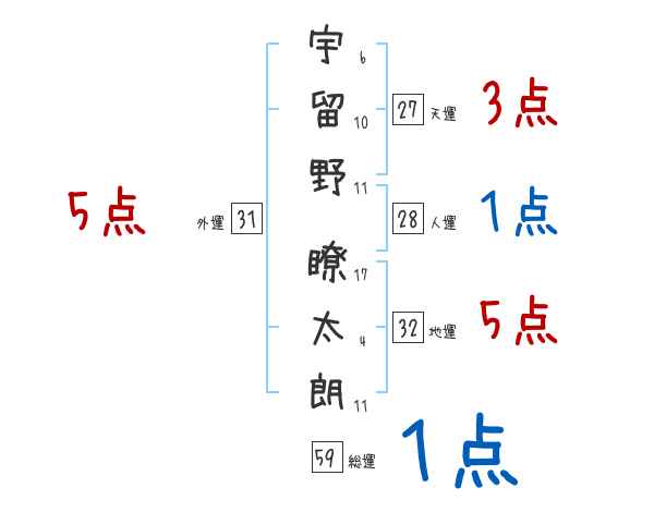 宇留野瞭太朗さんの画数の鑑定結果