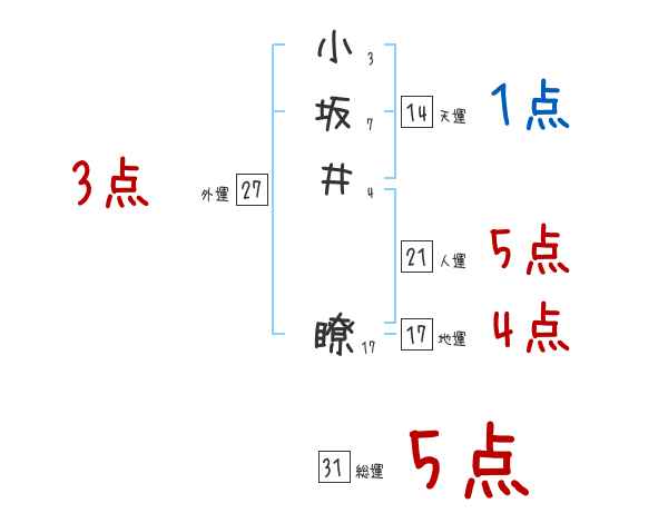 天運![]() | 小坂井瞭さんの天運は14画の1つ星!人に対して優しいがストレスを溜め込みがち。人間関係のトラブルを避けるよう気をつけましょう。 家系が持つ宿命的な運勢を表します。祖先から受け継いだ苗字ですので自分の力が及びません。家柄を象徴します。 |