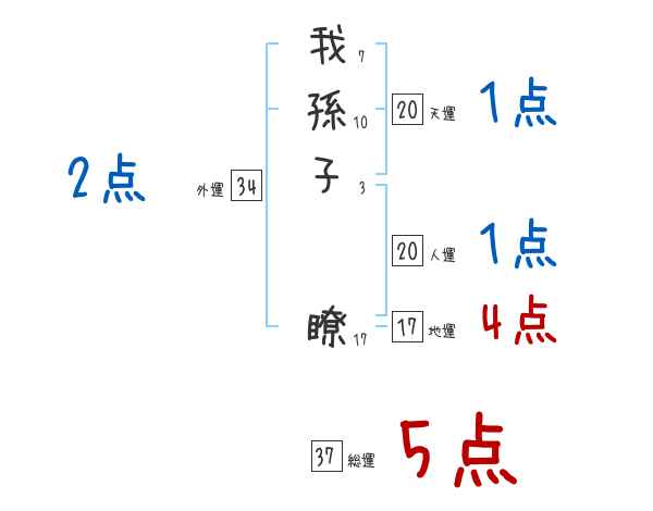 我孫子瞭さんの画数の鑑定結果