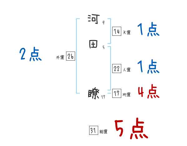 河田瞭さんの画数の鑑定結果