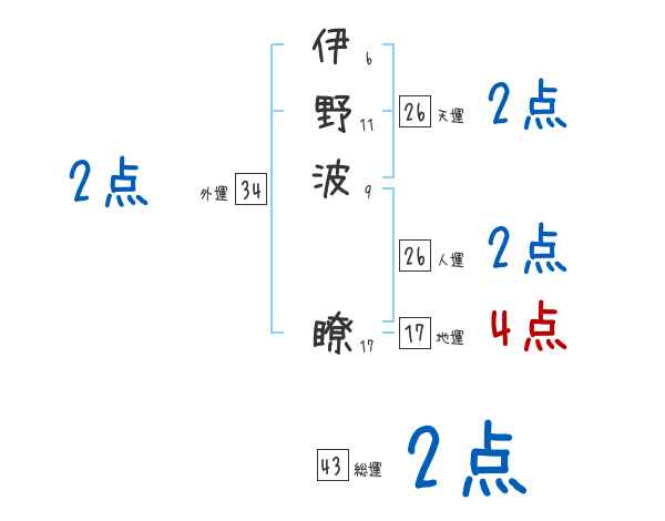 伊野波瞭さんの画数の鑑定結果