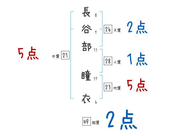 外運![]() | 長谷部瞳衣さんの外運は21画の5つ星!統率力がある。独立し成功する。名誉を手に入れる。 生活面を象徴する運勢です。外部から受ける影響力を表し、結婚運、家庭運や職場、環境への順応性を表します。 |