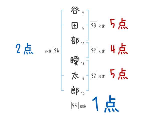 谷田部瞹太郎さんの画数の鑑定結果
