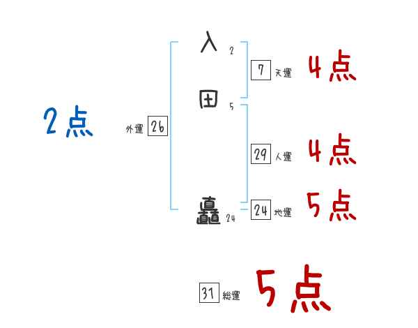 入田矗さんの画数の鑑定結果