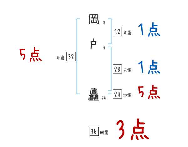 外運![]() | 岡戸矗さんの外運は32画の5つ星!柔軟性があり成功する。チャンスが多く金運が良い。 生活面を象徴する運勢です。外部から受ける影響力を表し、結婚運、家庭運や職場、環境への順応性を表します。 |