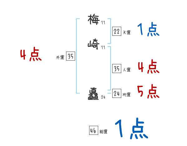 梅崎矗さんの画数の鑑定結果