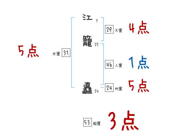 江籠矗さんの画数の鑑定結果