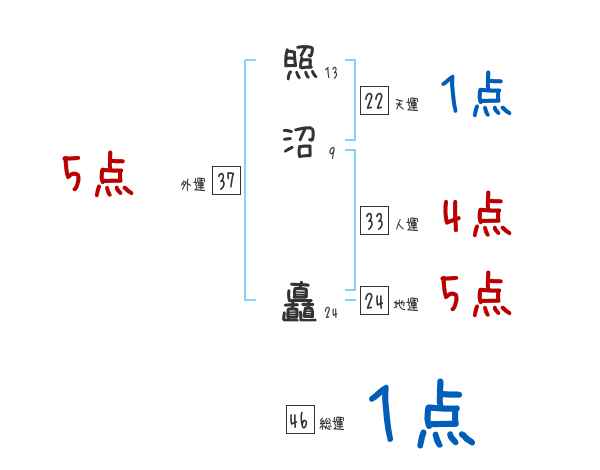 照沼矗さんの画数の鑑定結果