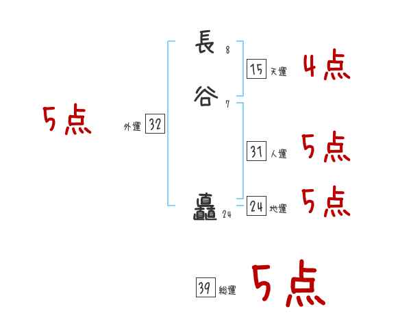 外運![]() | 長谷矗さんの外運は32画の5つ星!柔軟性があり成功する。チャンスが多く金運が良い。 生活面を象徴する運勢です。外部から受ける影響力を表し、結婚運、家庭運や職場、環境への順応性を表します。 |