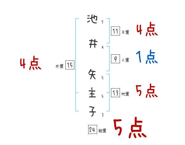 池井矢主子さんの画数の鑑定結果