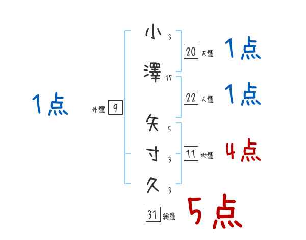 外運![]() | 小澤矢寸久さんの外運は9画の1つ星!消極的で才能を発揮することが苦手なことも。周りの意見に耳を傾けましょう。 生活面を象徴する運勢です。外部から受ける影響力を表し、結婚運、家庭運や職場、環境への順応性を表します。 |