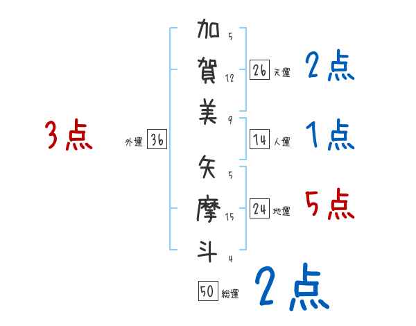 加賀美矢摩斗さんの画数の鑑定結果