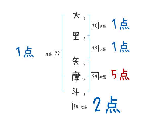 家系が持つ宿命的な運勢を表します。祖先から受け継いだ苗字ですので自分の力が及びません。家柄を象徴します。